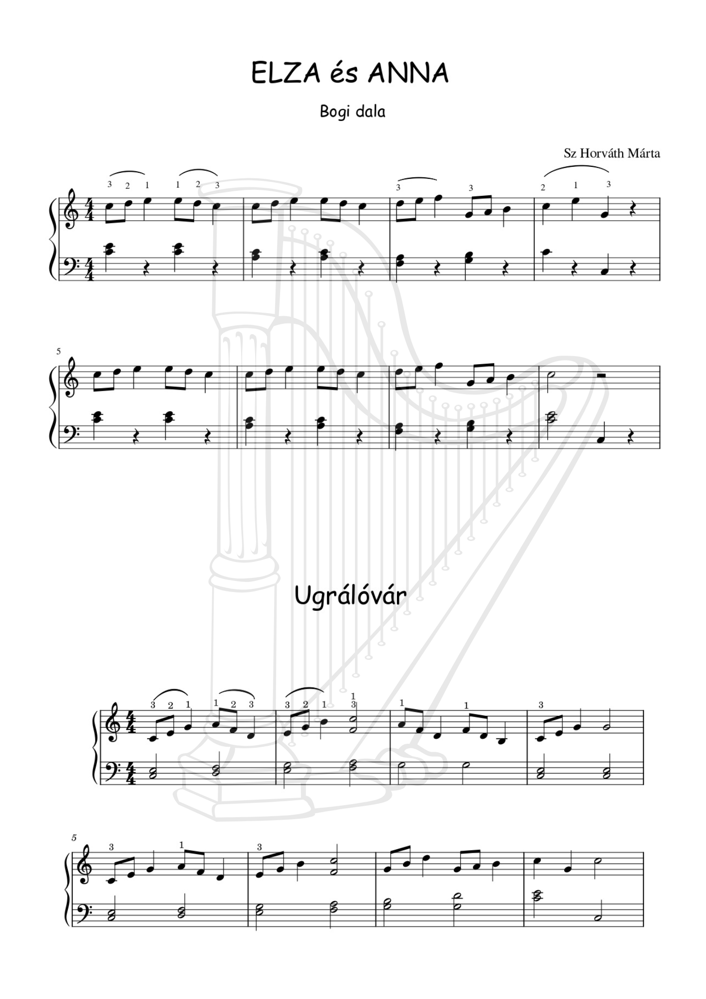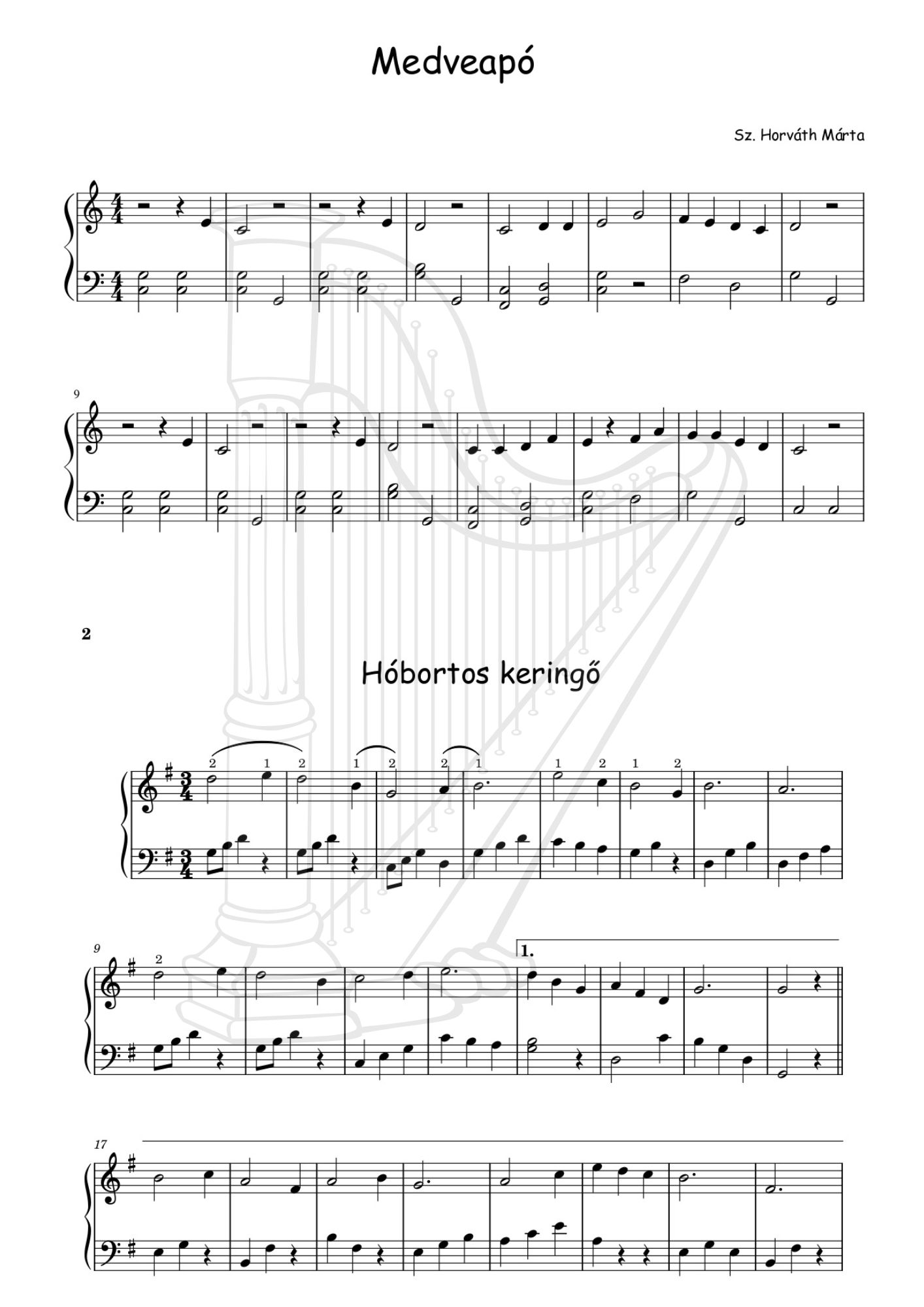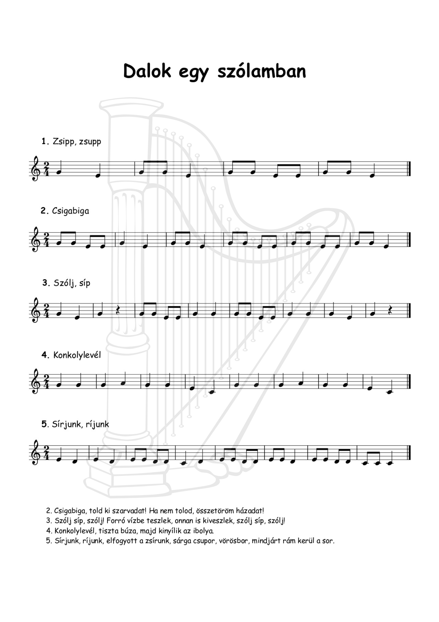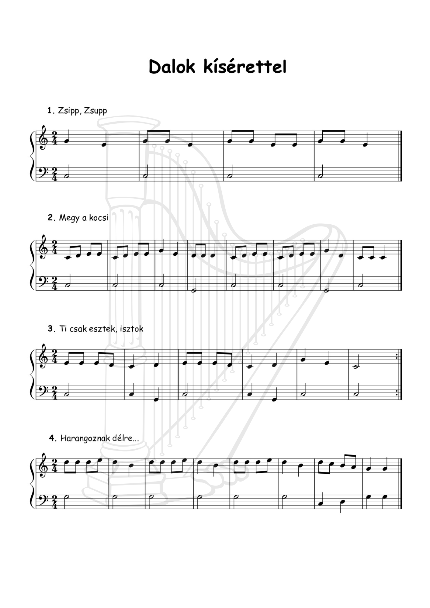 Gyermekdalok és népdalok kezdő hárfásoknak, egy szólamban és kísérettel (20 oldalas pdf)